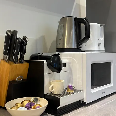 La cucina completamente attrezzata offre agli ospiti un microonde, un bollitore elettrico e un frigo, servizi per la preparazione di tè/caffè per garantire la massima comodità.